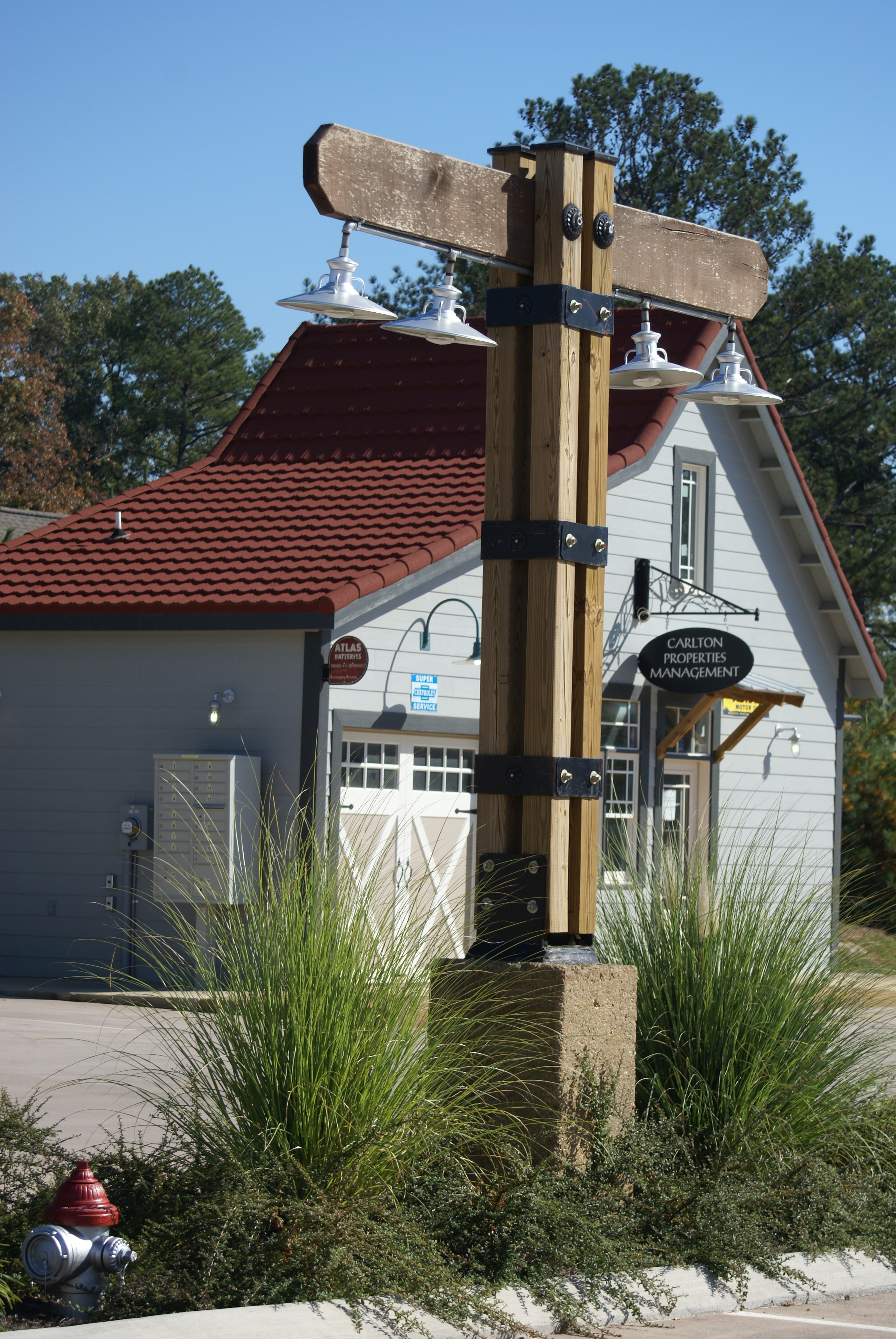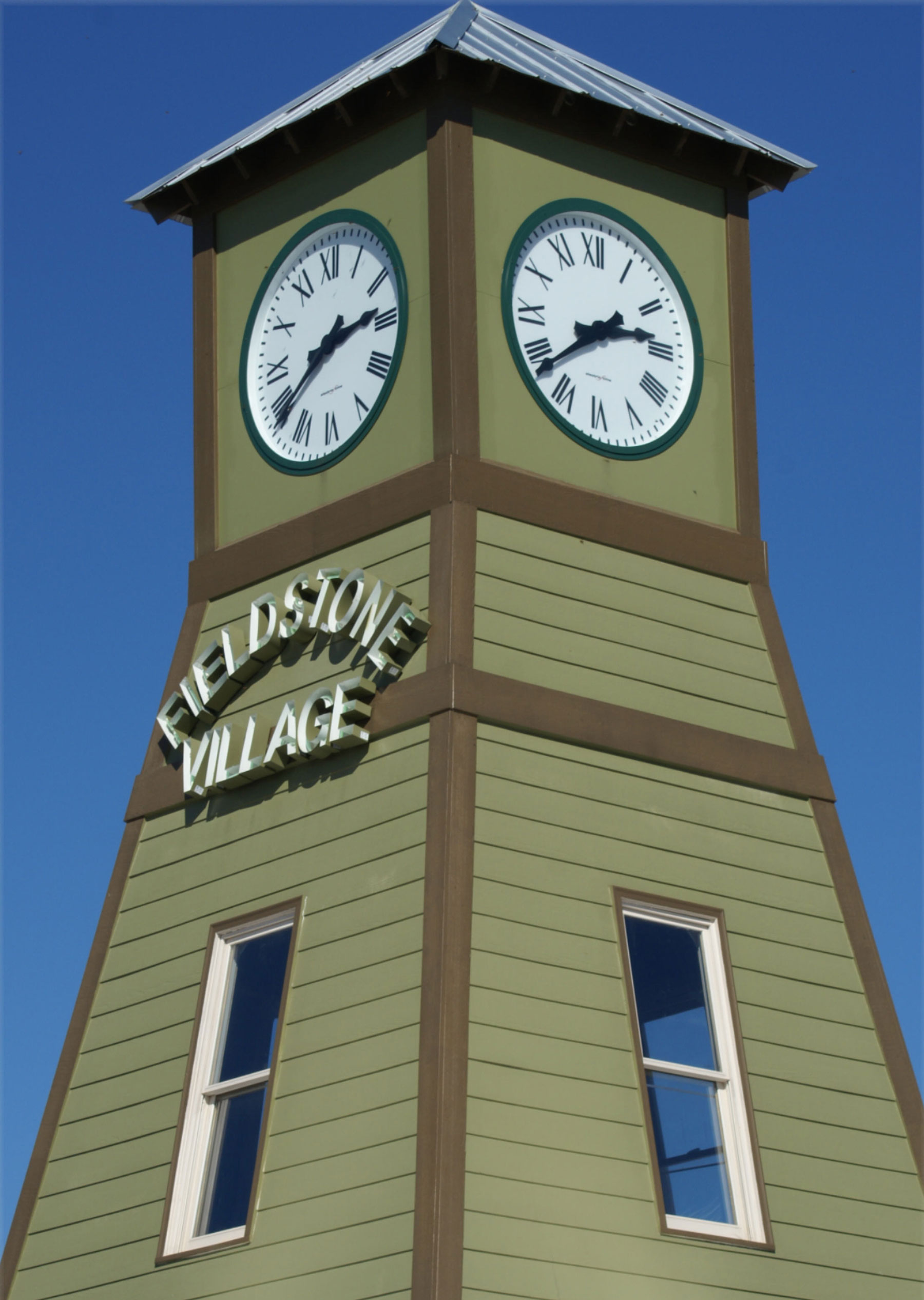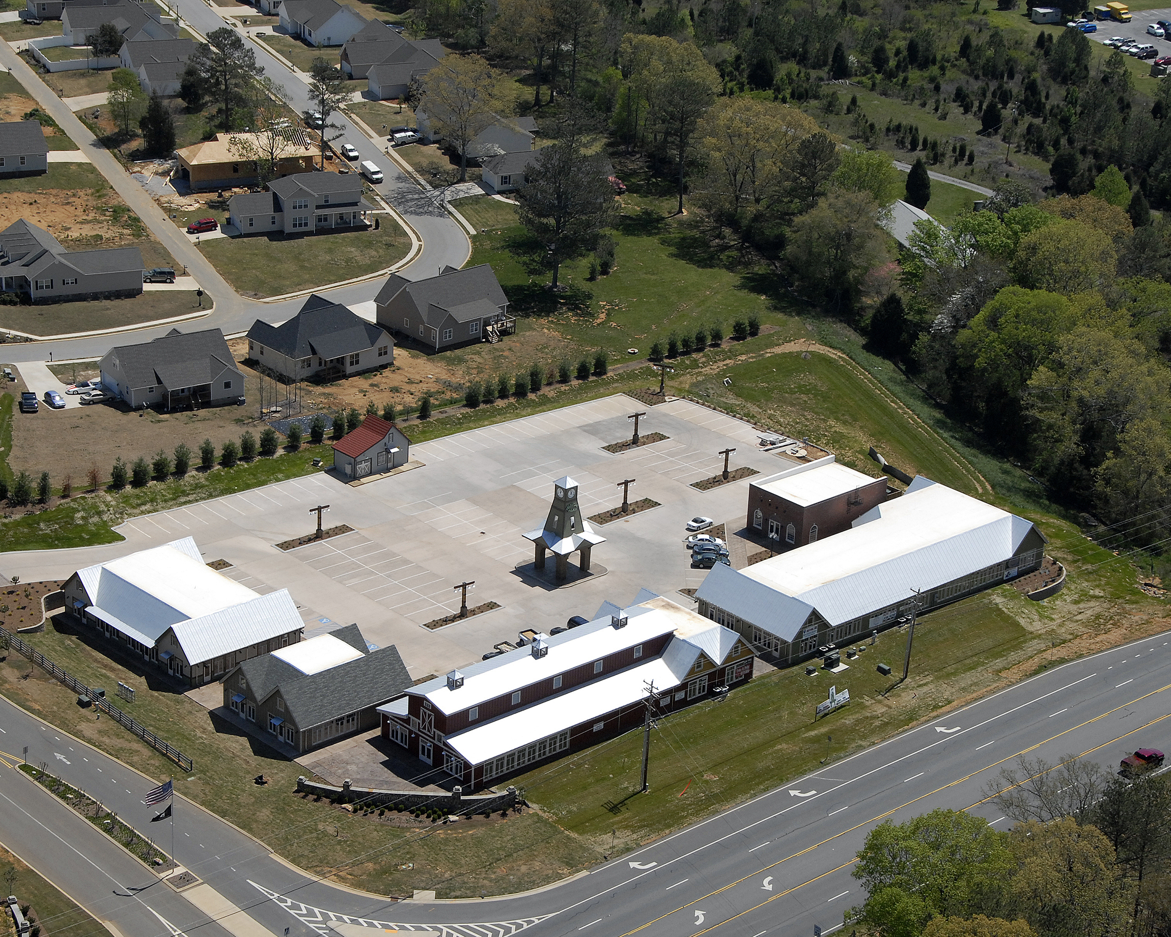 The signature accent is a forty foot clock tower above a stage for local functions such as music events, outdoor movies, and neighborhood gatherings. Rising above the village, the illuminated clock tower is a beacon for the Village as well as for the Fieldstone Farms residential community which is one of the sought after areas to live in Walker County.
